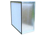 The GG HEPA  offers the option of galvanized steel or stainless steel  as material for the frame.  The metal frame allows for  greater strength and encloses the media pack.   The  moisture resistant media pack is protected by hemmed  edged on the aluminum or card paper board separators.